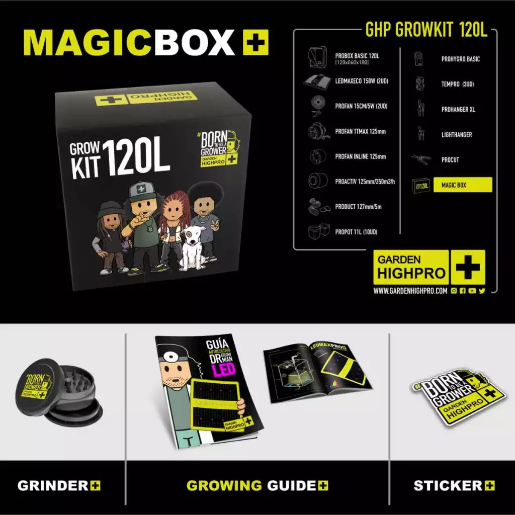 Hol dir jetzt dein Low Budget Growbox Set 120x60x180cm von Garden Highpro – maßgeschneidert für Einsteiger mit einer Anbaufläche von 120x60cm und ideal für 3 Pflanzen.