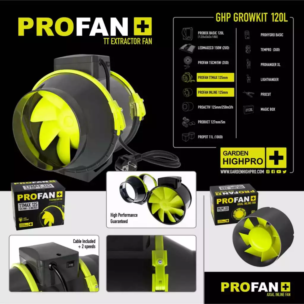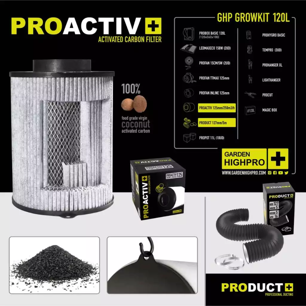 - Abluftschlauch (Proflex, 5m, 125mm): Ein flexibler und robuster Abluftschlauch, essentiell für eine effiziente Luftführung, um ideale Wachstumsbedingungen zu gewährleisten.